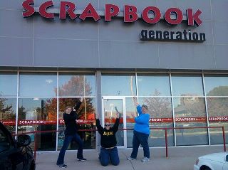 She wrote "Our first trip to Scrapbook Generation...we got a few laughs from people in the parking lot as we posed for this picture."