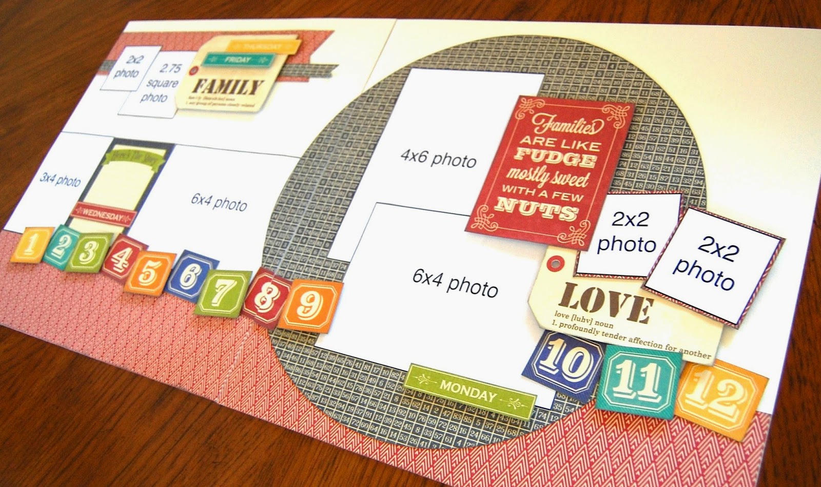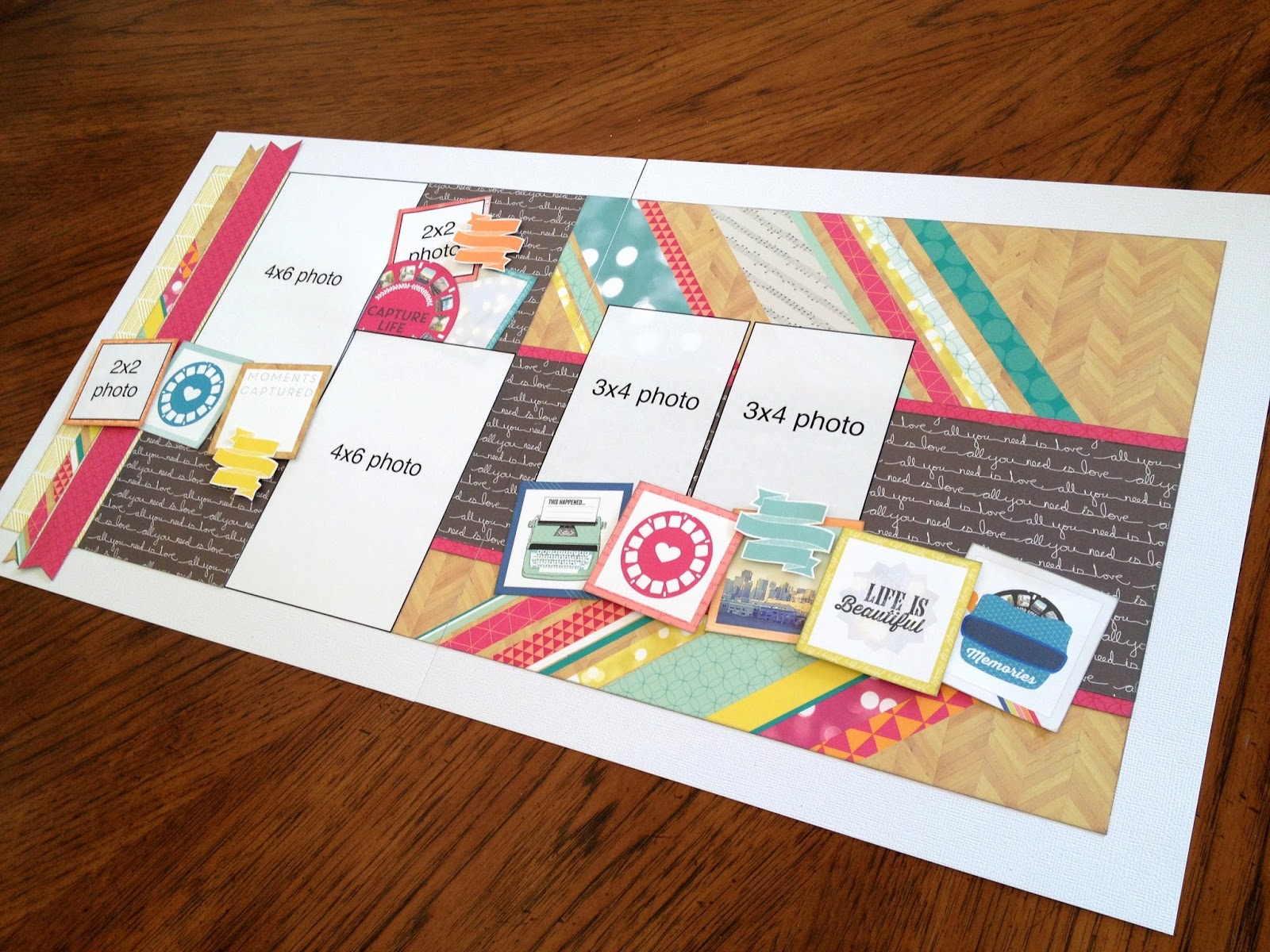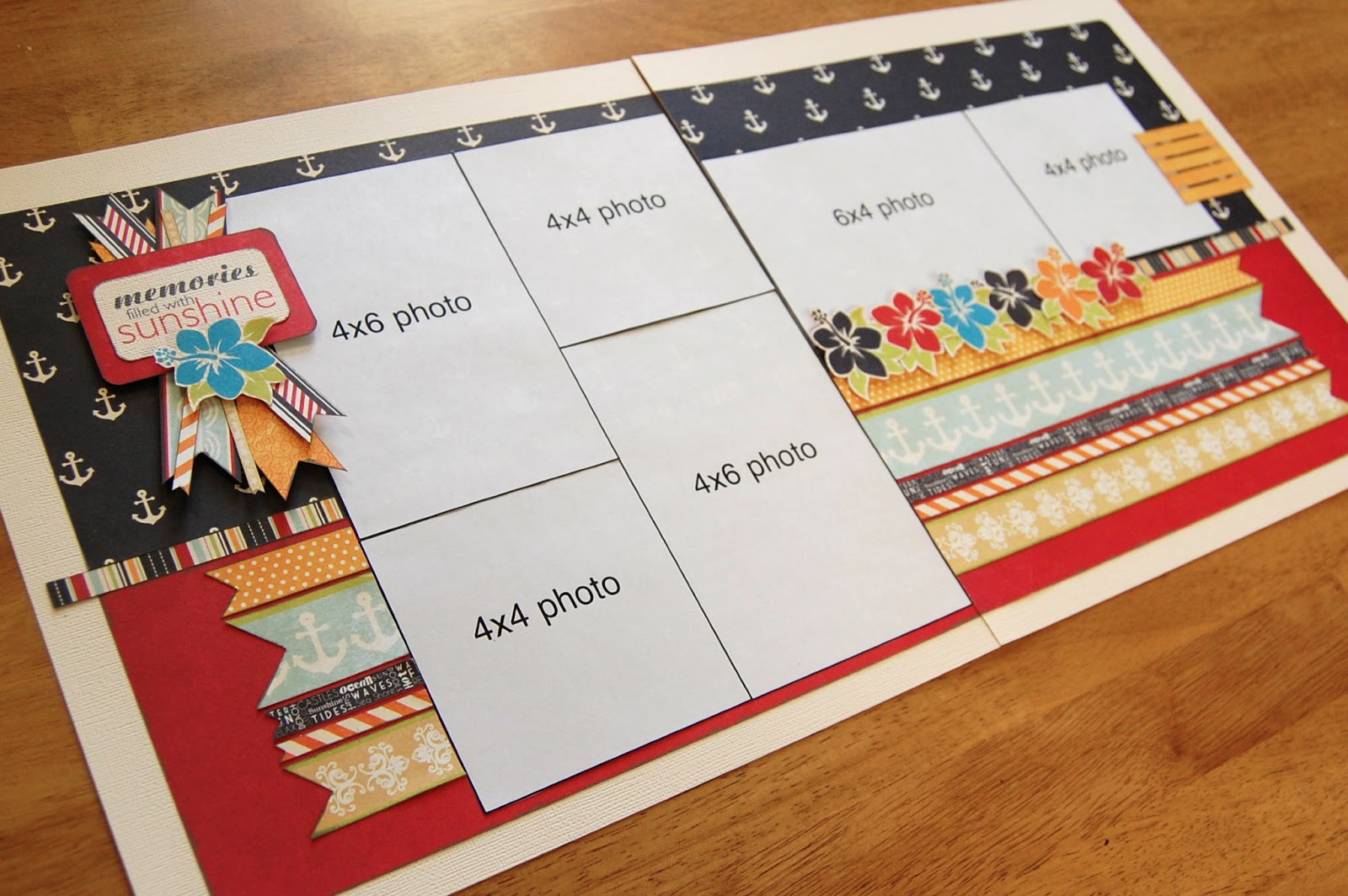 | August 2013 Super Saver Scrapbooking layouts (this photo and the two below) |